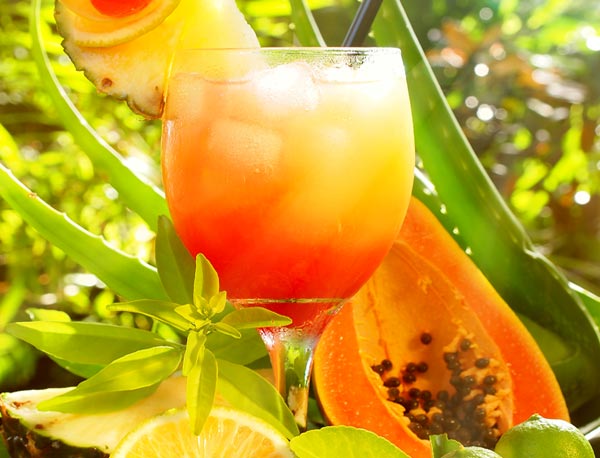 Tropical Banana - Rum Cola / Cuba Libre - Coladas - Ingwer und Ingwerbier - Fruchtige Cocktails - Long Island Iced Tea - Tropical Vermouth - Orange und Ananas - Tropical Sangria - Kakao und Kaffeelikör - Cocktails mit Kokosnuss - Tropical Sunrise - Sodawasser / Angostura - Alkoholfrei und Limonade