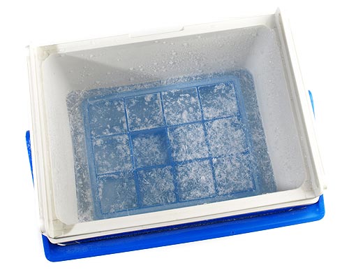 Um glasklare Eiswürfel herzustellen, muß vermieden werden, dass das Wasser zu schnell und von allen Seiten gleichzeitig gefriert.